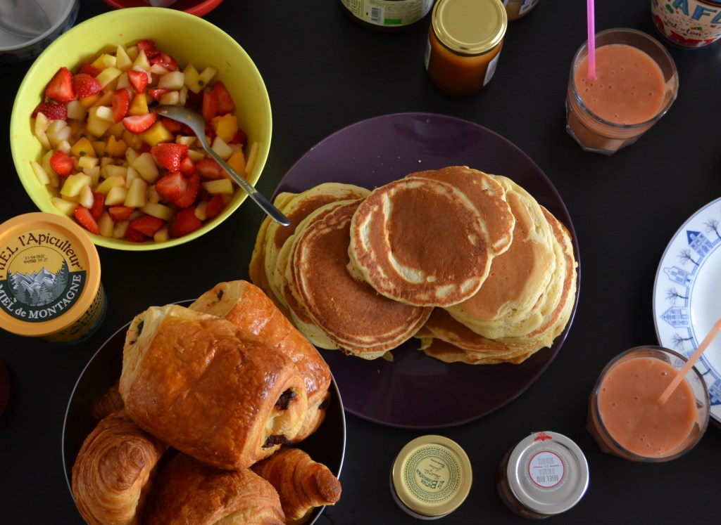 Petit tips: pour savoir quand retourner ton pancake, aide toi des bulles. En gros, plus ton pancake se rapproche d’une cuisson optimale, plus les bulles qui se forment se feront lentes et ne se refermeront presque pas.