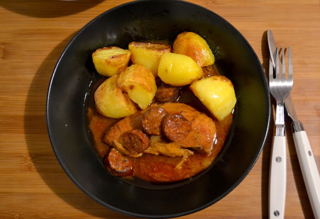 Nb: Si tu veux faire cette recette sans slow cooker, tu peux faire revenir le poulet, l’oignon, l’ail et le chorizo directement dans ta marmitte et une fois que tu as ajouté les liquides tu peux également ajouter la maïzena, couvrir et laisser cuire pendant 1 à 2h à feu moyen.