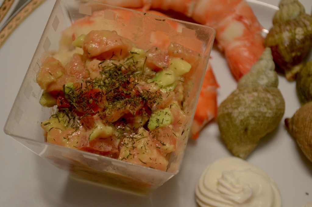 - Dans un saladier mélange le saumon mariné, le saumon fumé, la tomate, l’avocat et la deuxième moité du jus de citron vert.