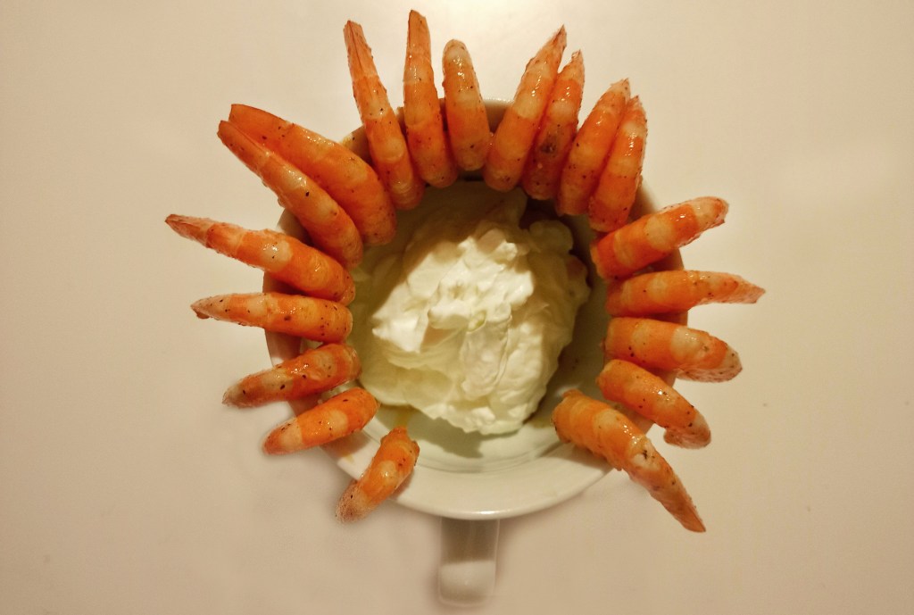 - Tu peux maintenant disposer les crevettes et la chantilly comme tu le souhaites et servir !