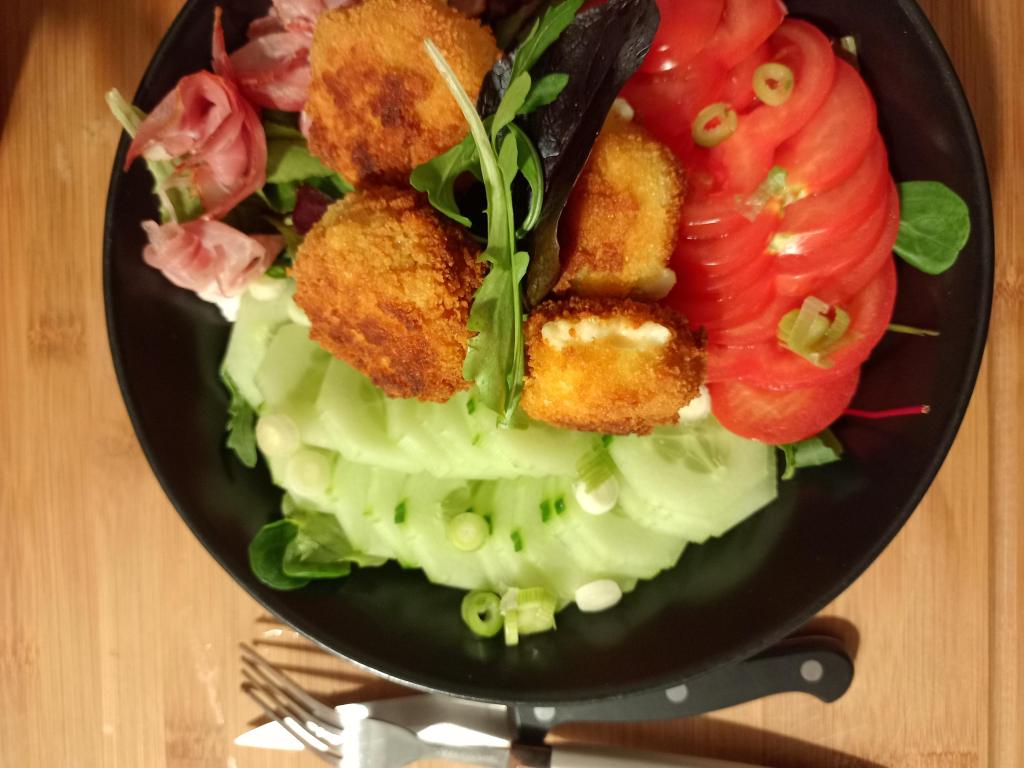 - Fais chauffer ton huile et dépose les petits fromage panés. Il faut que l’huile saisisse bien la panure.